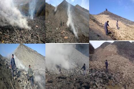 我公司團(tuán)隊已成功處理過多處矸石山自燃發(fā)火,如在平煤矸石山、西山局屯蘭礦后風(fēng)坪嶺風(fēng)井矸石山、鐵法煤業(yè)集團(tuán)大平煤礦矸石山、徐礦集團(tuán)北馬坊煤礦矸石山等。通過向空隙內(nèi)注入滅火和充填材料并使之固結(jié)在孔隙、裂隙中,改變了矸石山孔隙—裂隙結(jié)構(gòu)、邊界條件,阻礙風(fēng)流的傳送和滲透,從而防止煤矸石山自燃的發(fā)生并且防治復(fù)燃。
